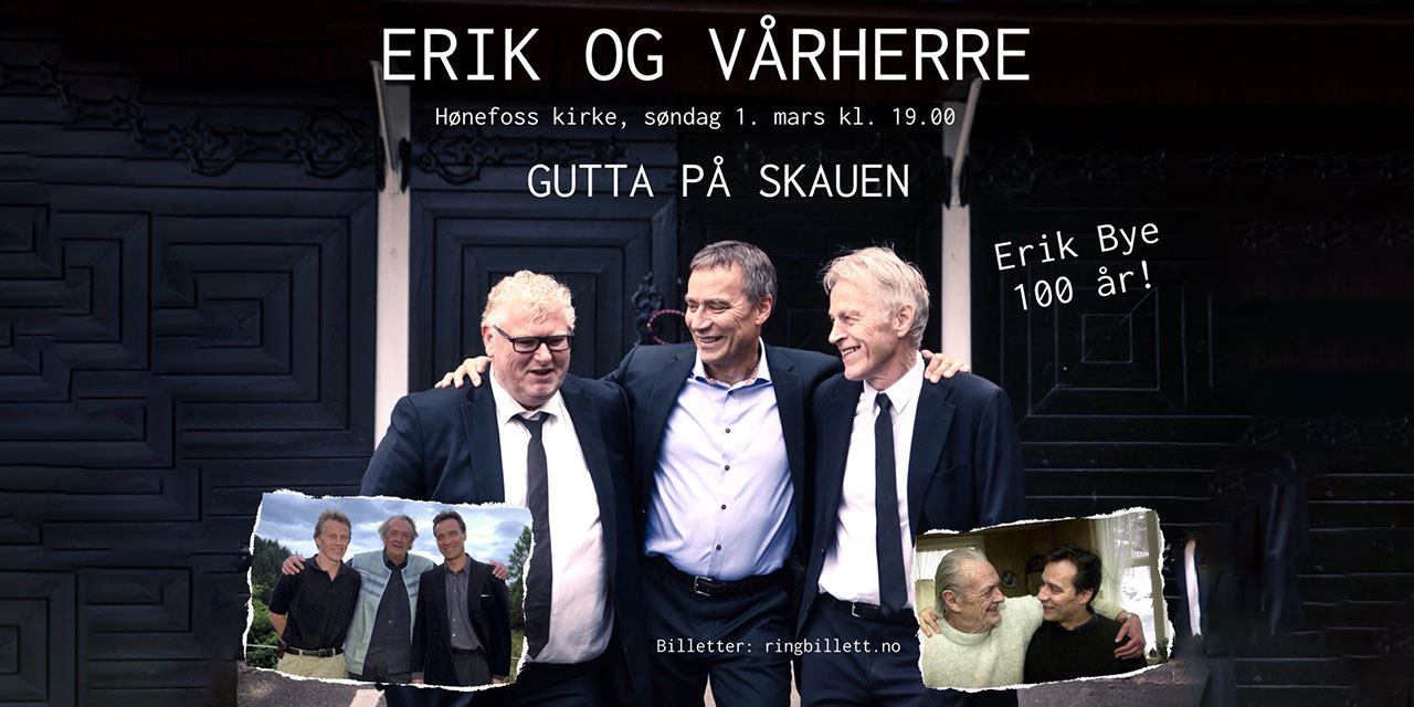 Søndag 1. mars 2026 er det 100 år siden hele Norges Erik Bye ble født. Det vil Gutta på skauen markere med en varm konsert viet dikterens forhold til skaperen og skaperverket, og hans egen vandring på Vårherres klinkekule.